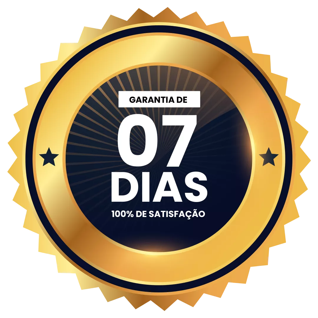 Oferecemos uma garantia incondicional de 07 dias. Se dentro desse período você não estiver satisfeito com o curso, pode solicitar o reembolso.